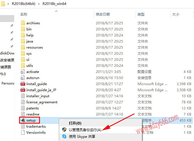 3、鼠标右击【setup】选择【以管理员身份运行】。