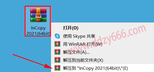 1、鼠标右击【InCopy2021(64bit)】压缩包选择【解压到 InCopy2021(64bit)】。